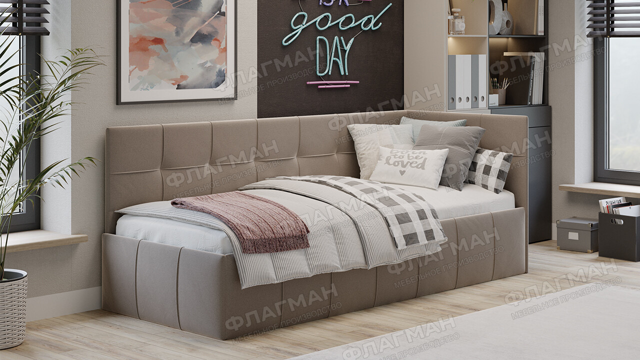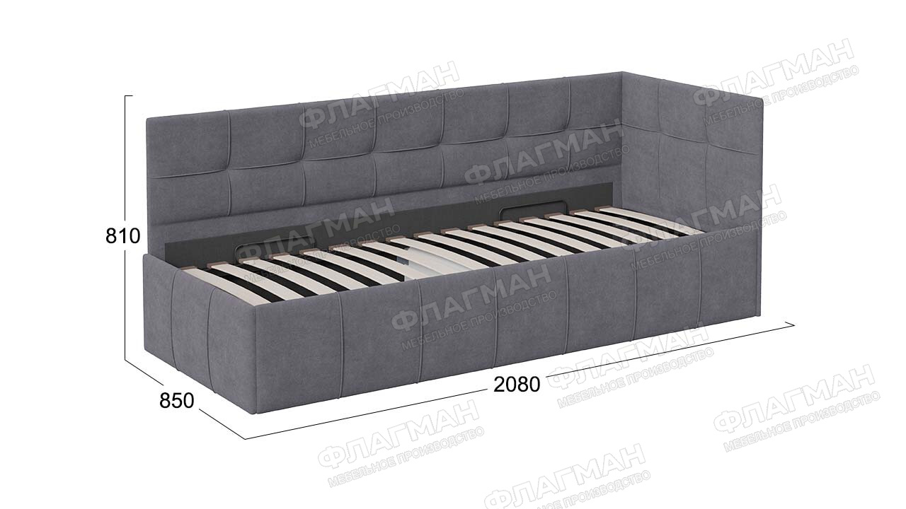 Кровать с мягкой обивкой с ПМ (с подъемным механизмом) «Грей» Тип 1 Велюр Galaxy