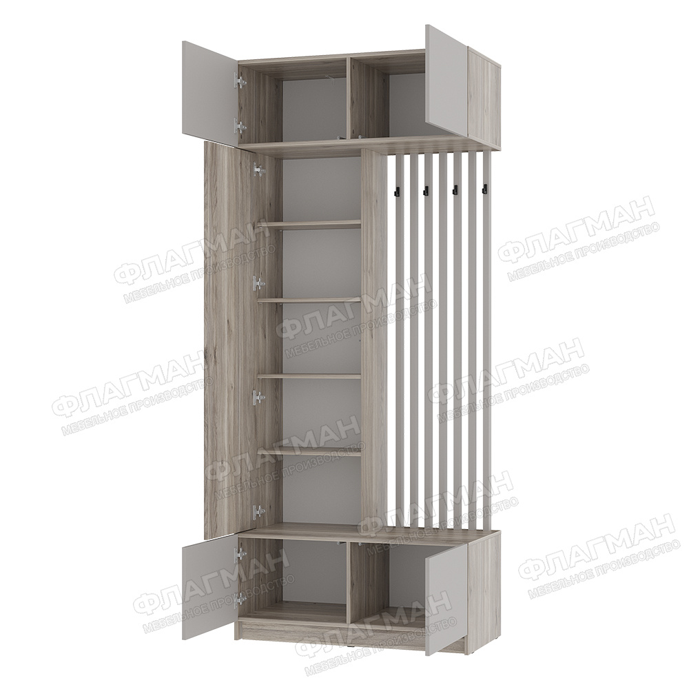 Состав комплекта: -Пенал Багира ПН-01 Ширина, мм: 502 Высота, мм: 2384 Глубина, мм: 510 -Прихожая Багира ПР-03 Ширина, мм: 1002 Высота, мм: 2384 Глубина, мм: 510