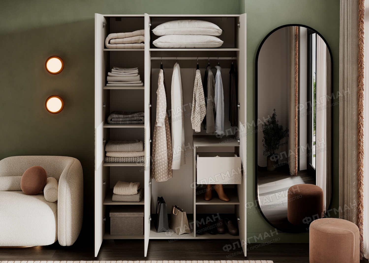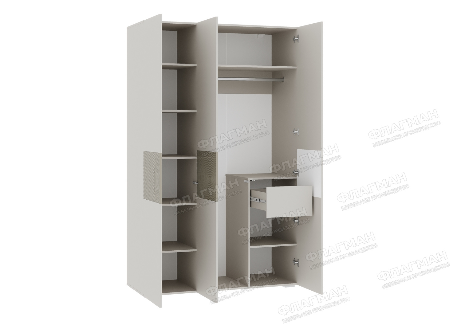 - Современная система открывания: Створки легко и бесшумно открываются с помощью удобных толкателей.